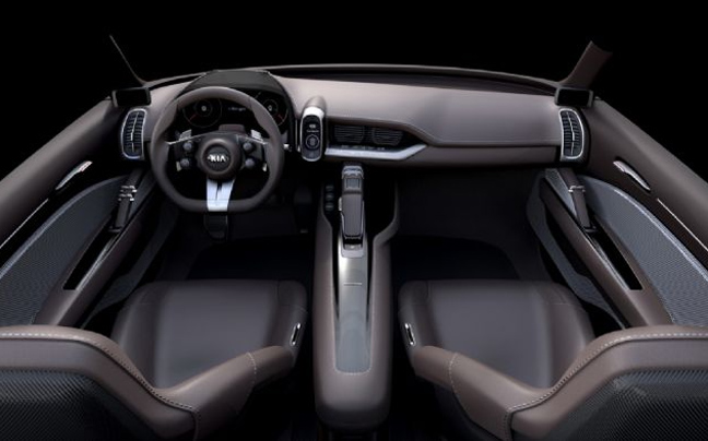 Στο εσωτερικό του Kia Novo επικρατεί μια μινιμαλιστική προσέγγιση, με την καμπίνα να εστιάζει στον οδηγό. Μέσω 3D ολογραμμάτων, ο οδηγός παίρνει τις απαραίτητες πληροφορίες, ενώ μια οθόνη αφής δίπλα στο τιμόνι, η οποία έχει ανίχνευση δακτυλικών αποτυπωμάτων, επιτρέπει στον οδηγό να χειρίζεται τις λειτουργίες του οχήματος. Η εταιρεία, υπόσχεται, τέλος σημαντική ευρυχωρία μέσω έξυπνων λύσεων.