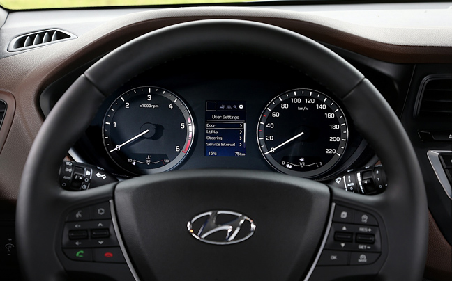 Η ευρωπαϊκή ομάδα της Hyundai έχει δημιουργήσει μια τολμηρή αισθητική στο εμπρός μέρος του οχήματος που πλέον διαθέτει μια διακριτική μάσκα δύο στοιχείων. Η χρώμιο-πλαισιωμένο εξαγωνική μάσκα έχει χαμηλώσει για σχεδιαστούς και μηχανικούς λόγους, ενώ μια λεπτή, οριζόντια γρίλια που συνδέει τους bi-function προβολείς (που ενσωματώνονται τα φώτα ημέρας), τονίζει το πλάτος του οχήματος. Ενισχύοντας τη συγκροτημένη εμφάνιση του οχήματος, οι θόλοι των τροχών ρέουν διακριτικά μέσα στο μακρύ καπό.
