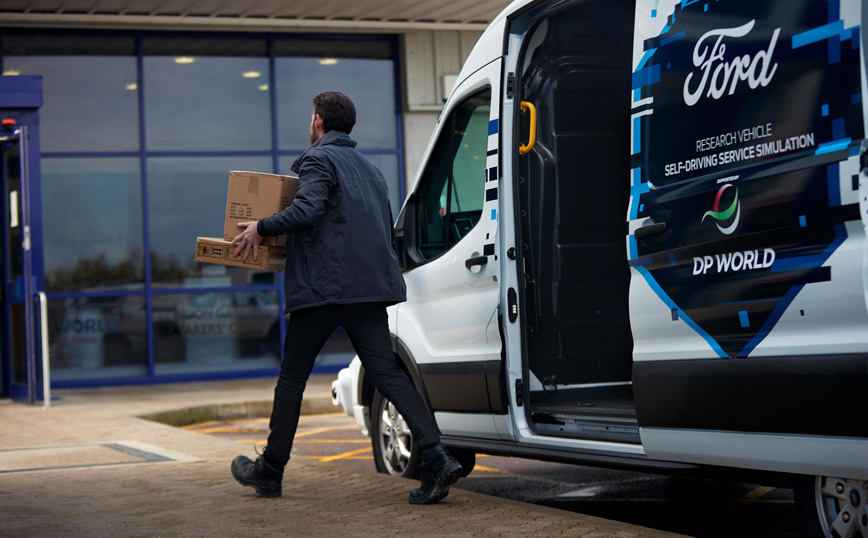 Η Ford και το DP World London Gateway πραγματοποίησαν μία δοκιμή με ένα προσομοιωμένο αυτόνομο όχημα για να καταδείξουν πόσο χρήσιμη μπορεί να αποβεί μία τέτοια μελλοντική τεχνολογία για εργαζόμενους και διαχειριστές μεγάλων εργοταξίων. Η πρωτοβουλία αποτελεί μέρος του ερευνητικού προγράμματος της Ford για την αυτόνομη οδήγηση (Self-Driving Research Programme), που έχει σχεδιαστεί για να βοηθήσει τις επιχειρήσεις να κατανοήσουν πόσο ωφέλιμα είναι τα αυτόνομα οχήματα για τις δραστηριότητές τους. Έχοντας ξεκινήσει από τον Ιούνιο με σκοπό να διερευνήσει τις πιθανές επιπτώσεις στις υπηρεσίες ταχυμεταφορών και τις κατ’ οίκον παραδόσεις, η δοκιμή με την DP World κατέγραψε με ποιο τρόπο διαχειρίστηκαν οι παραλήπτες την πρόσβαση σε αυτόνομα οχήματα.