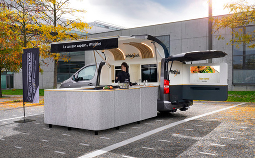 Το Whirlpool Experience Tour είναι αναπόσπαστο μέρος της επικοινωνιακής στρατηγικής της μάρκας. Αυτό το ξεχωριστό επικοινωνιακό εργαλείο προορίζεται για χρήση B2B και απευθύνεται στους πωλητές του δικτύου λιανικής της Whirlpool, σε ειδικούς στο χώρο της γαστρονομίας, καθώς και σε εμπόρους σε όλη τη Γαλλία, ενώ θα συμμετάσχει σε διεθνείς εμπορικές εκθέσεις.
