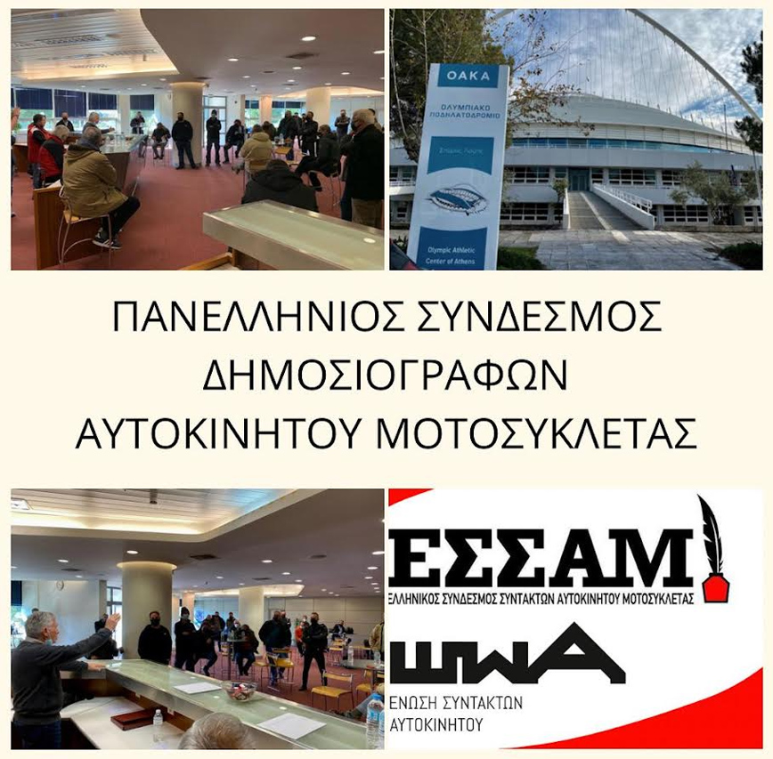 Την Παρασκευή 17 Δεκεμβρίου 2021, πραγματοποιήθηκε στο Ολυμπιακό Ποδηλατοδρόμιο (Ολυμπιακό Αθλητικό Κέντρο Αθηνών «Σπύρος Λούης», Μαρούσι) η Γενική-Καταστατική-Συνέλευση των μελών των εν ισχύ δύο σωματείων ΕΛΛΗΝΙΚΟΣ ΣΥΝΔΕΣΜΟΣ ΣΥΝΤΑΚΤΩΝ ΑΥΤΟΚΙΝΗΤΟΥ ΜΟΤΟΣΥΚΛΕΤΑΣ (Ε.Σ.Σ.Α.Μ.) και ΕΝΩΣΗ ΣΥΝΤΑΚΤΩΝ ΑΥΤΟΚΙΝΗΤΟΥ (Ε.Σ.Α.). Από την Συνέλευση προέκυψε ο νέος ενοποιημένος φορέας που θα ονομάζεται πλέον, ΠΑΝΕΛΛΗΝΙΟΣ ΣΥΝΔΕΣΜΟΣ ΔΗΜΟΣΙΟΓΡΑΦΩΝ ΑΥΤΟΚΙΝΗΤΟΥ ΜΟΤΟΣΥΚΛΕΤΑΣ (ΠΑ.ΣΥ.Δ.Α.Μ).
