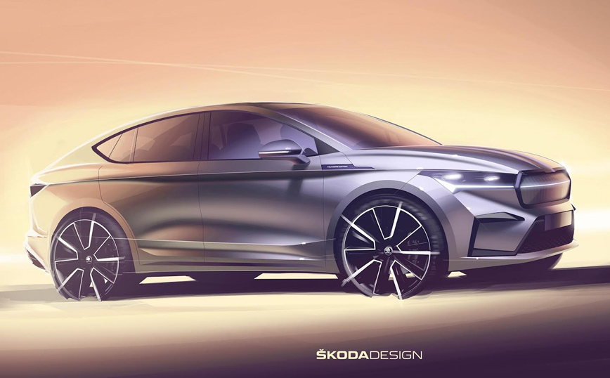 Η Skoda Auto προχώρησε στο επόμενο στάδιο της αποκάλυψης του νέου Enyaq Coupe iV, λίγο πριν την παγκόσμια πρεμιέρα στο τέλος του μήνα, δίνοντας στη δημοσιότητα δύο design σκίτσα του νέου μοντέλου. Η coupé έκδοση του πλήρως ηλεκτρικού Enyaq iV έχει ακόμα πιο ελκυστική σχεδίαση και, χάρη στην εξαιρετική αεροδυναμική της, διαθέτει ακόμη μεγαλύτερη αυτονομία από την έκδοση SUV. Τα σκίτσα αποκαλύπτουν μία ελαφρά κεκλιμένη γραμμή οροφής, με το πίσω μέρος να χαρακτηρίζεται από ένα κάθετο απότομο τελείωμα. Επίσης, ξεχωρίζουν η εμπρός σπορ ποδιά καθώς και τα πλαϊνά μαρσπιέ, βαμμένα στο χρώμα του αμαξώματος.