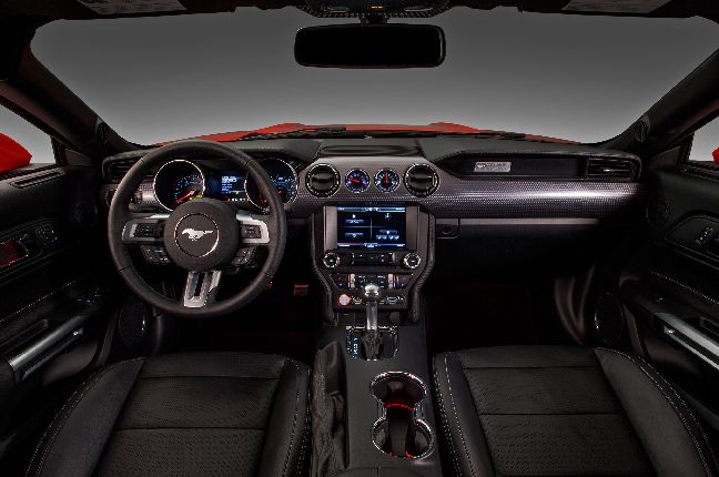 Η νέα Mustang διατίθεται σε εκδόσεις fastback και cabrio με 6τάχυτο μηχανικό και αυτόματο κιβώτιο, και υιοθετεί κλασικά σχεδιαστικά στοιχεία όπως τρισδιάστατα πίσω φώτα με τρεις μπάρες και μια πρόσοψη με χαρακτηριστική τραπεζοειδή μάσκα που παραπέμπει στα σαγόνια ενός καρχαρία.