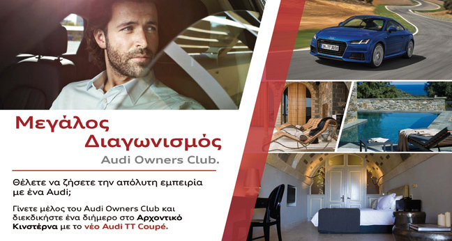 Η Kosmocar – Audi πραγματοποιεί διαγωνισμό για το Audi Owners Club ο οποίος θα διαρκέσει έως και τις 29 Μαΐου 2015, με δώρα: