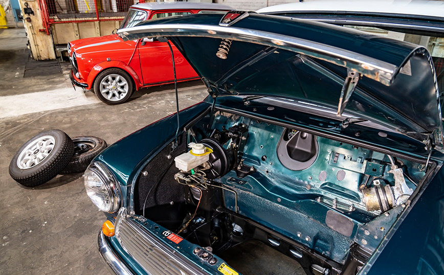 Για να προσφέρει την παραδοσιακή αίσθηση go-kart με ένα κινητήρα μηδενικών ρύπων, ο αρχικός βενζινοκινητήρας του κλασικού Mini αντικαθίσταται από ένα σύγχρονο σύστημα ηλεκτροκίνησης. Μόνον αναστρέψιμες αλλαγές μπορούν να πραγματοποιούνται στο όχημα κατά τη διαδικασία μετατροπής που προβλέπει το Mini Recharged. Η προσεκτική διαχείριση της ιστορικής κληρονομιάς είναι σημαντικό μέρος της ιδέας. Αυτό σημαίνει ότι καθιστά εφικτή την επαναφορά του κλασικού μοντέλου στην αρχική του κατάσταση κάποια στιγμή στο μέλλον. Κατά τη διάρκεια της μετατροπής, ο αρχικός κινητήρας κάθε οχήματος επισημαίνεται και αποθηκεύεται ώστε να μπορεί να επαναχρησιμοποιηθεί στην περίπτωση μιας μελλοντικής μετασκευής του κλασικού Mini.