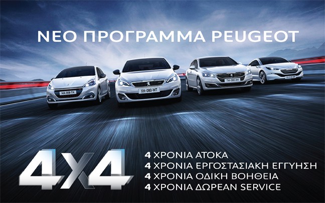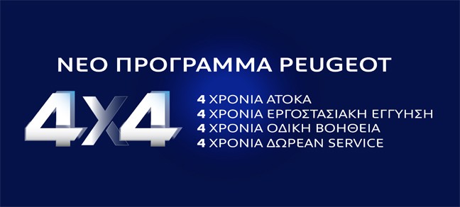 Σύμφωνα με το «Peugeot 4X4», ο κάθε αγοραστής οποιουδήποτε μοντέλου και οποιασδήποτε έκδοσης επιβατικών αυτοκινήτων Peugeot, μπορεί πλέον να απολαμβάνει τα τετραπλά οφέλη που μόνο η Peugeot προσφέρει: