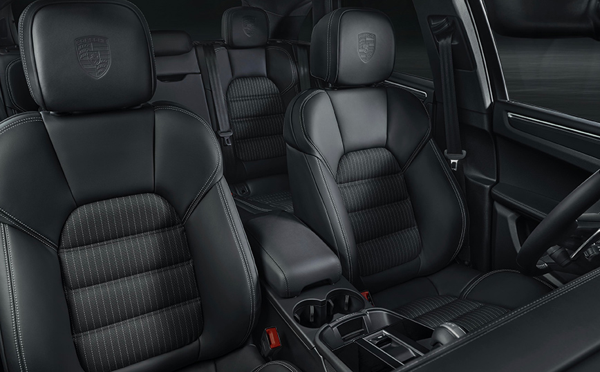Στο εσωτερικό, η Macan T, διαθέτει standard sport ηλεκτρικά καθίσματα ρυθμιζόμενα σε 8 σημεία (επενδεδυμένα με μαύρο δέρμα), με το κεντρικό τους τμήμα σε μοτίβο Sport-Tex και τα προσκέφαλα να έχουν χαραγμένα το λογότυπο της μάρκας. Δημιουργώντας μια φωτεινή αντίθεση οι ραφές στα καθίσματα, στα προσκέφαλα και στο τιμόνι είναι ασημένιες. Στον βασικό εξοπλισμό, συμπεριλαμβάνεται και το θερμαινόμενο πολλαπλών λειτουργιών τινόνι GT, και το Sport Chrono στο κέντρο του ταμπλό. Το «κατώφλι» των θυρών είναι σε μαύρο αλουμίνιο με χαραγμένο το λογότυπο «Macan T». Στον προαιρετικό εξοπλισμό, υπάρχει ως επιλογή, ένα πολλαπλών λειτουργιών τιμόνι GT με ανθρακονήματα σε επιλεγμένα σημεία του καθώς και ένας ιονιστής.