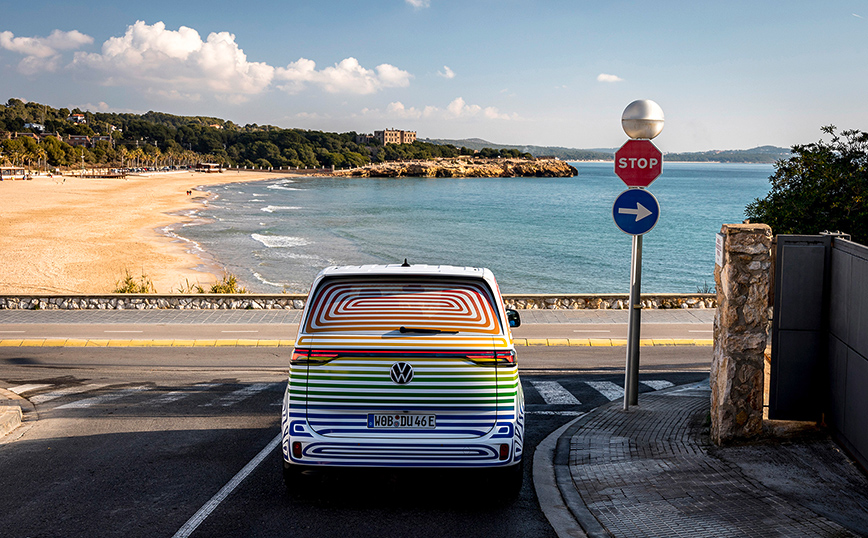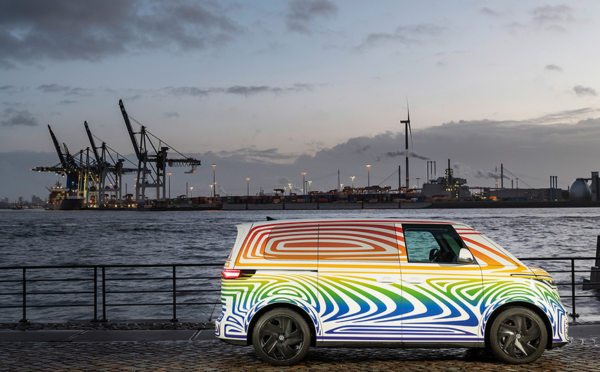 Τα ID. Buzz που ήδη κυκλοφορούν είναι ελαφρώς καμουφλαρισμένα. Παρ’ όλα αυτά γίνεται αντιληπτό ότι, η τελική μορφή του αυτοκινήτου ελάχιστα διαφέρει από το πρωτότυπο του 2017 ενώ εμφανείς είναι και οι ομοιότητες με το θρυλικό T1, το αρχέτυπο Bulli που παρουσιάστηκε σχεδόν 70 χρόνια πριν. Αυτά τα στοιχεία περιλαμβάνουν εξαιρετικά κοντούς πρόβολους, μέγιστη αξιοποίηση του χώρου με compact διαστάσεις, την κλασική σχεδιαστική διαίρεση του αμαξώματος σε άνω και κάτω επίπεδο, συν το αδιαμφισβήτητο «πρόσωπο» με το σχήμα “V”. Και ακριβώς όπως το αρχικό Bulli, το ID. Buzz έχει επίσης κίνηση στους πίσω τροχούς.
