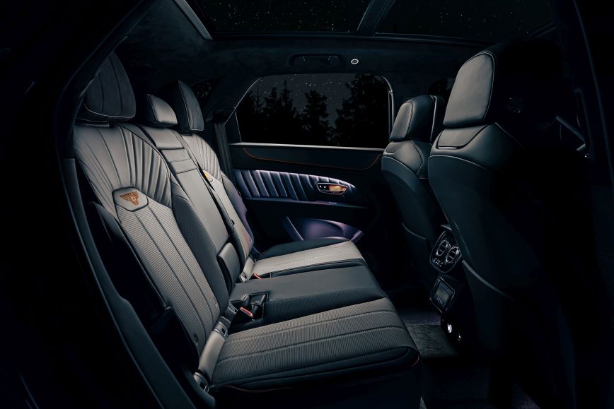 Στην καμπίνα, το πρώτο μεμονωμένο χαρακτηριστικό που αντικρίζουν οδηγός ή επιβάτες είναι τα φωτισμένα κατώφλια των θυρών που απεικονίζουν πλανήτες σε τροχιά γύρω από το ηλιακό σύστημα. Αυτά που σίγουρα εντυπωσιάζουν είναι τα πορτοκαλί πλαίσια που περιβάλλουν τις προσόψεις Galaxy Stone στο ταμπλό και στα πλαίσια των θυρών. Μοναδικές σατέν μαύρες γρίλιες ηχείων, στο κορυφαίας κατηγορίας ηχοσύστημα «Naimfor Bentley», αφήνουν να αναδειχθούν τα κεντρικά σήματα Naim, φωτισμένα σαν αστέρια τη νύχτα.