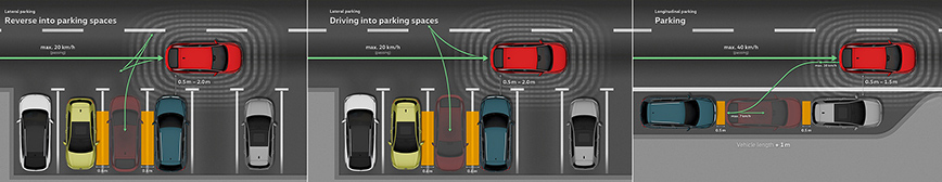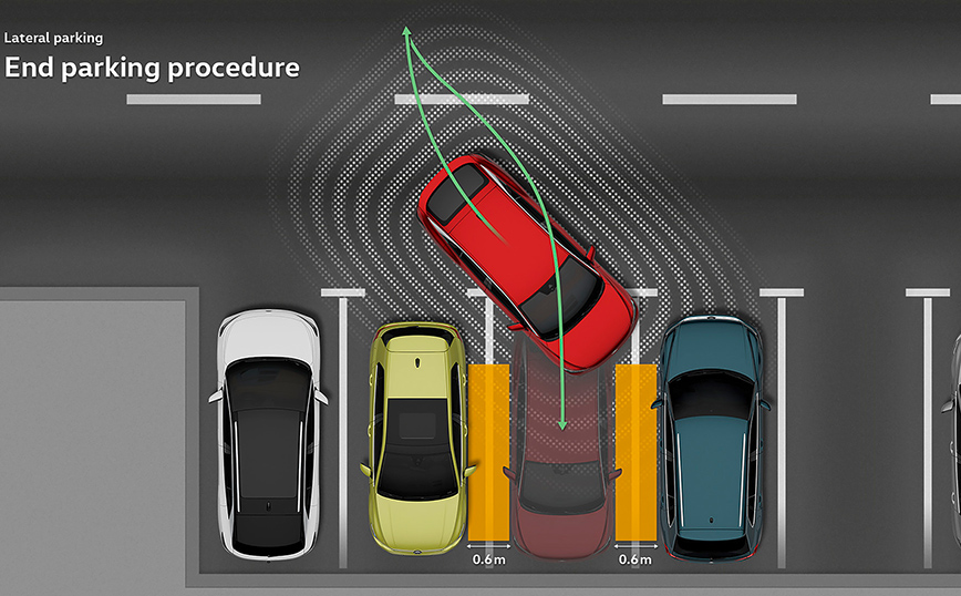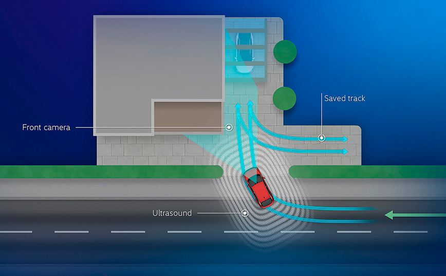 – Με το σύστημα «Park Assist Plus με λειτουργία μνήμης» το όχημα μπορεί να απομνημονεύσει έως και πέντε διαφορετικούς ελιγμούς στάθμευσης. Λειτουργεί σε ταχύτητες έως 40 χλμ./ώρα και για απόσταση έως 50 μέτρα. Ο οδηγός απλώς παρκάρει μία φορά αποθηκεύοντας στο σύστημα τον ελιγμό στάθμευσης, με το αυτοκίνητο να μπορεί να τον εκτελέσει όποτε ζητηθεί, με τον οδηγό απλώς να παρακολουθεί τη διαδικασία.