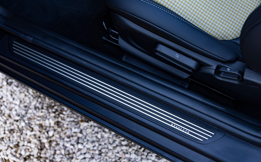 Τα διακοσμητικά των μαρσπιέ με το διακριτικό «Resolute» υποδέχονται τους επιβάτες στο εσωτερικό της ειδικής έκδοσης, όπου κάθονται σε αποκλειστικά σπορ καθίσματα από Black Pearl / Light Chequered fabric/leatherette (ύφασμα/δερματίνη). Αυτός ο χρωματικός συνδυασμός ταιριάζει με το φινίρισμα του αμαξώματος σε Rebel Green και με τα μαύρα και χρυσαφί εξωτερικά σχεδιαστικά χαρακτηριστικά. Η έκδοση Yours Leather Lounge σε Carbon Black, διατίθεται επίσης προαιρετικά.