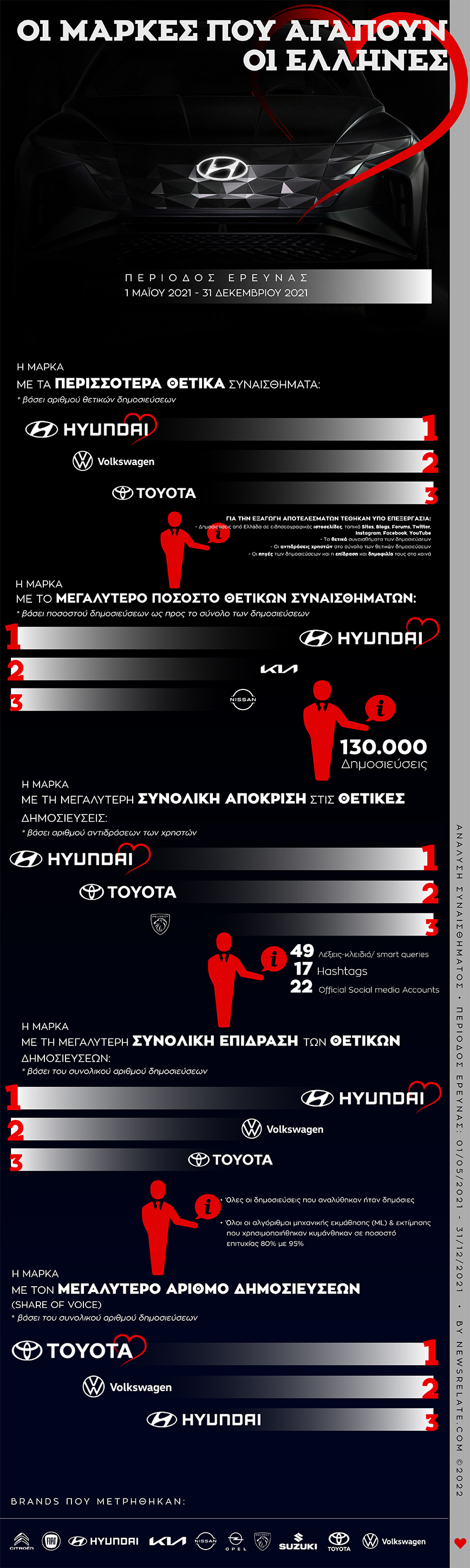 Το δύσκολο είναι να μπορέσει κανείς να μετρήσει το αν και κατά πόσο εγείρουν θετικά συναισθήματα τα αυτοκίνητα που ανήκουν σε όλες τις άλλες μάρκες οι οποίες δε λογίζονται ως premium. Η αυτοκινητοβιομηχανία διαθέτει μια πλούσια γκάμα αυτοκινήτων για όλες τις ανάγκες και τα γούστα οπότε είχε έρθει η ώρα να μετρηθούν τα “συναισθήματα” των καταναλωτών σε σχέση και με αυτά.