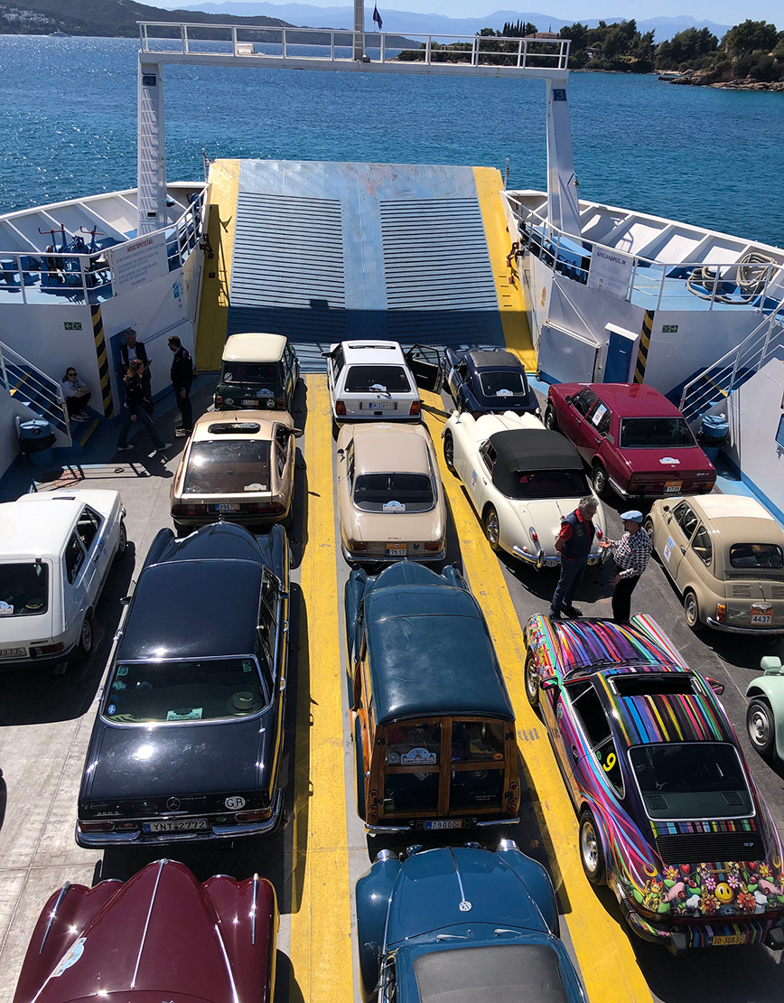 Το πρωί του Σαββάτου τα αυτοκίνητα εκκίνησαν για τον καθιερωμένο γύρο του νησιού και το προγραμματισμένο πικ-νικ στην παραλία της Αγίας Παρασκευής. Η επιστροφή έγινε αργά το μεσημέρι από το δυτικό μέρος του νησιού και μέσω του παλιού λιμανιού, όπου οι κάτοικοι και οι επισκέπτες του νησιού είχαν την ευκαιρία να θαυμάσουν τα ωραία αυτοκίνητα στα στενά σοκάκια των Σπετσών. Τα αυτοκίνητα παρατάχθηκαν ανά μάρκα, προέλευση και χρονολογία μπροστά από το ξενοδοχείο Poseidonion Grand Hotel, έτοιμα για το φωτογραφικά φλας και για την ψηφοφορία για το πιο όμορφο αυτοκίνητο.