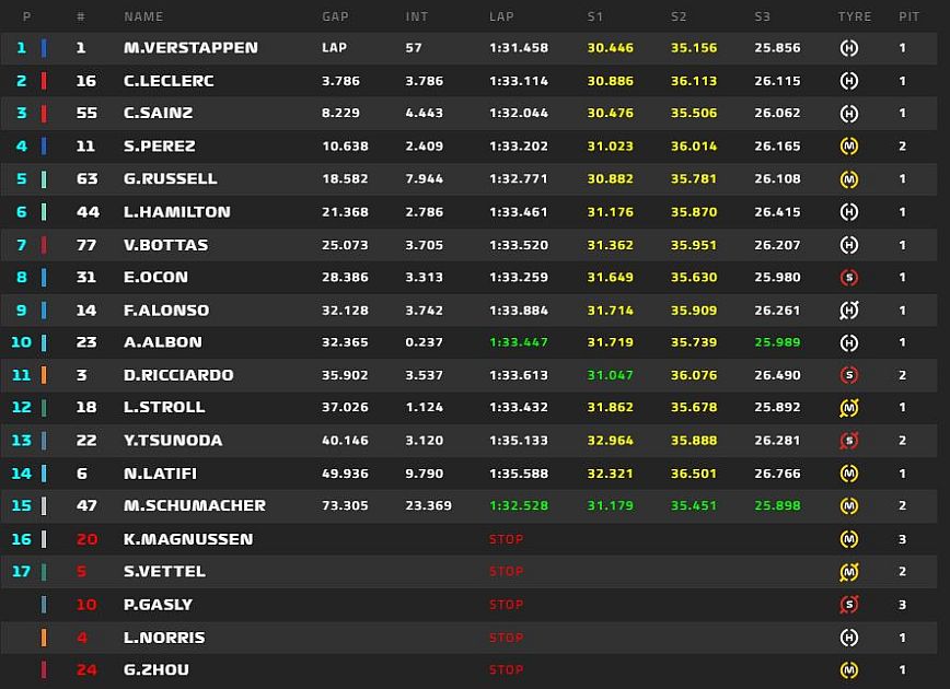Παρότι ο Leclerc πλησίασε αρκετά δεν κατάφερε να τον προσπεράσει.