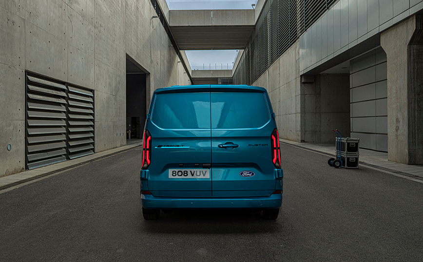 Η αμιγώς ηλεκτρική αρχιτεκτονική του E-Transit Custom βοηθά στην επίτευξη μιας στοχευόμενης αυτονομίας έως και 380 χλμ, προσφέροντας ταυτόχρονα ταχεία φόρτιση DC και πλήρη ικανότητα ρυμούλκησης. Επιπλέον, το νέο van θα ανεβάσει την παραγωγικότητα σε νέα επίπεδα, χρησιμοποιώντας προηγμένες τεχνολογίες για συνεχή συνδεσιμότητα.