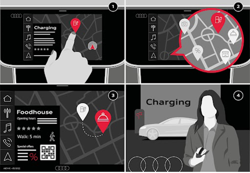 Στο μέλλον, για παράδειγμα, όταν οι οδηγοί Audi αναζητούν στο MMI το πλησιέστερο κατάστημα για αγορά βιολογικών προϊόντων, θα μπορούν παράλληλα να βλέπουν και πρόσθετο περιεχόμενο κατά την παραγγελία, όπως τις επιπλέον υπηρεσίες ή προσφορές που είναι διαθέσιμες εκείνη ακριβώς τη στιγμή στις τοποθεσίες που εμφανίζονται στην οθόνη. Αυτό σημαίνει ότι οι τοπικές επιχειρήσεις αποκτούν τη δυνατότητα να παρουσιάζουν την γκάμα των προϊόντων και των υπηρεσιών τους στους πελάτες της μάρκας με ιδανικό τρόπο. Ενώ οι τελευταίοι επωφελούνται από τις πιο ολοκληρωμένες πληροφορίες για τις αντίστοιχες εταιρείες σε πραγματικό χρόνο, και, όπου αυτό ισχύει, για τις αποκλειστικές προσφορές που «τρέχουν» το συγκεκριμένο διάστημα. Για παράδειγμα, ο ιδιοκτήτης ενός καταστήματος, θα μπορούσε να προσφέρει δωρεάν ένα φλιτζάνι καφέ από την καφετέρια του καταστήματος ή να επιτρέπει στους ιδιοκτήτες των ηλεκτρικών οχημάτων να φορτίζουν δωρεάν το αυτοκίνητό τους με κάθε αγορά που πραγματοποιούν. Για να εξαργυρώσουν την προσφορά, οι οδηγοί θα πρέπει απλά να σκανάρουν ένα QR code που θα εμφανίζεται στην οθόνη του ΜΜΙ.