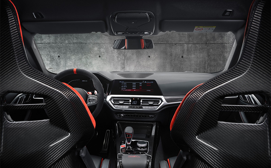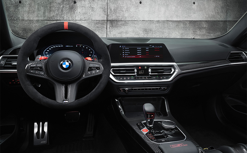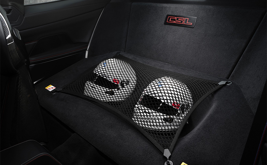 Το τιμόνι με επένδυση Alcantara Μ, η ανθρακί επένδυση οροφής, οι διακοσμητικές λωρίδες εσωτερικού από ανθρακόνημα, τα λογότυπα «CSL» στα καθίσματα, την κεντρική κονσόλα και το πίσω πάνελ, καθώς και οι ειδικές για μοντέλο Μ ενδείξεις, συμβάλλουν στο να δημιουργείται το ιδανικό περιβάλλον αυτοκινήτου για οδηγική ευχαρίστηση. Ταπετσαρίες από δέρμα Merino με εμπλουτισμένα χαρακτηριστικά και ζώνες ασφαλείας M, προσφέρονται επίσης στάνταρ. Επιπλέον, στο πίσω τμήμα, υπάρχουν αποθηκευτικοί χώροι για δύο κράνη.