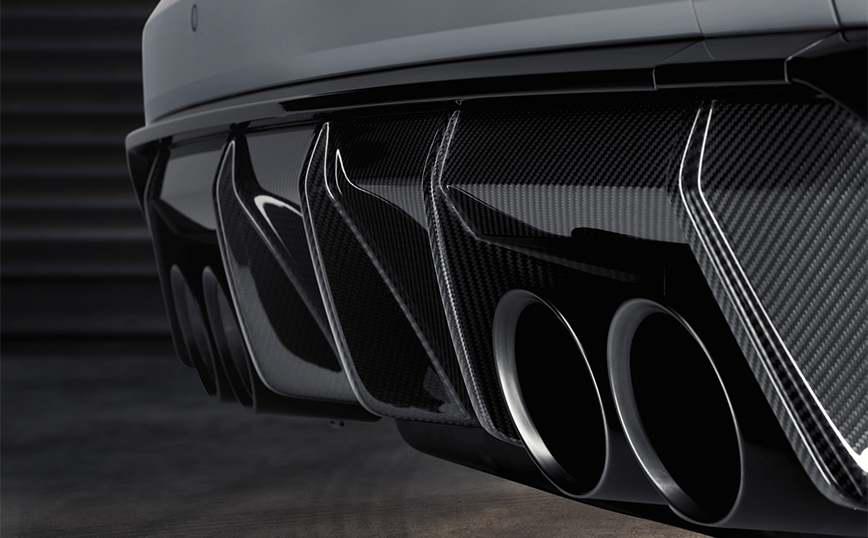 Η ανθρακονημάτινη δομή εξαρτημάτων του αμαξώματος, είναι ορατή σε διάφορες περιοχές, συμπεριλαμβανομένων των δύο εσοχών στο καπό. Οι επιφάνειες των εσοχών (που δεν είναι βαμμένες στο χρώμα του αμαξώματος) τονίζονται επιπλέον με κόκκινα περιγράμματα. Οι κόκκινες γραμμές προσδίδουν επίσης πρόσθετη έμφαση στα δύο πτερύγια στην οροφή από CFRP, στο περίγραμμα των μαρσπιέ, στα μαύρα λογότυπα του μοντέλου, στα αποκλειστικά splitters από CFRP, καθώς και στα ένθετα της αεροκουρτίνας στο εμπρός μέρος.