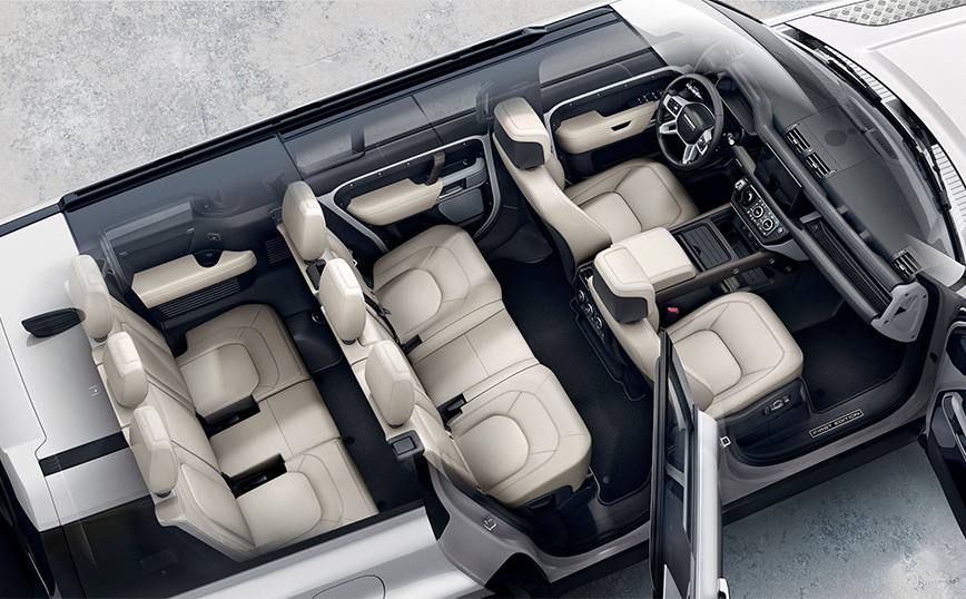 Το νέο Defender 130 διαθέτει διευρυμένο αμάξωμα που αυξάνει τον εσωτερικό χώρο και είναι ιδανικό για οικογενειακά ταξίδια περιπέτειας σε όλες τις εδαφικές συνθήκες, καθώς μπορεί να μεταφέρει μέχρι οκτώ άτομα με εξαιρετική άνεση. Παρά το αυξημένο μήκος του αμαξώματος, διατηρεί τις μεγάλες ικανότητές του εκτός δρόμου όπου «τίποτα δεν το σταματά», περιλαμβάνοντας τρεις σειρές καθισμάτων σε διάταξη 2+3+3