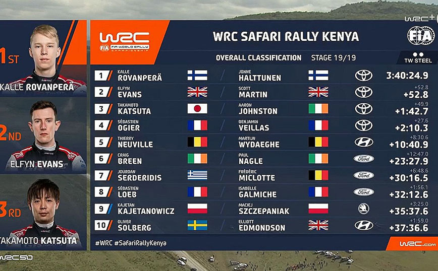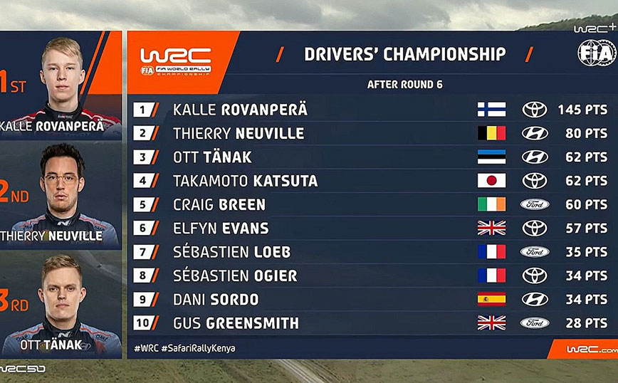 Η τέταρτη κατά σειρά νίκη του 22χρονου Φιλανδού Κάλε Ροβάνπερα και οι τέσσερις πρώτες θέσεις της Toyota στο φετινό Ράλι Σαφάρι ήταν τεράστια βήματα προς τους φετινούς τίτλους Οδηγών & Κατασκευαστών του WRC για οδηγό και ομάδα.
