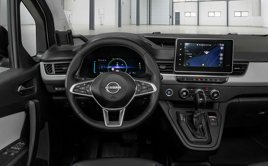 Στο εσωτερικό, το Townstar EV θέτει την άνεση των πελατών και την εργονομία στην πρώτη γραμμή. Διαθέτοντας περισσότερα από 20 τεχνολογικά χαρακτηριστικά, συμπεριλαμβανομένης της υπηρεσίας συνδεσιμότητας στο όχημα και του διαθέσιμου ψηφιακού πίνακα οργάνων 10 ιντσών, αντιπροσωπεύει το πιο προηγμένο van στην τρέχουσα γκάμα LCV της Nissan.