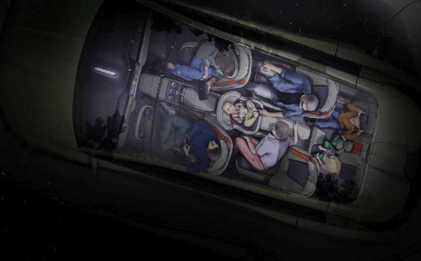 Το εσωτερικό προσφέρει επίσης τη δυνατότητα δύο διαφορετικών χωροταξικών διαρρυθμίσεων, για οδήγηση και ανάπαυση. Στη διάταξη οδήγησης, όλα τα χειριστήρια βρίσκονται στην ιδανική θέση για εύκολη πρόσβαση σε αυτά, ενώ η κεντρική οθόνη αφής είναι κάθετα ευθυγραμμισμένη, διευκολύνοντας την ανάγνωση των πληροφοριών που εμφανίζονται. Η διάταξη ανάπαυσης μπορεί να ενεργοποιηθεί κατά τη φόρτιση ή τη στάση για ξεκούραση. Σε αυτή, το τιμόνι και ο πίνακας οργάνων μετακινούνται προς τα εμπρός, ενώ τα καθίσματα της πρώτης και της δεύτερης σειράς μετακινούνται προς τα πίσω. Με αυτό τον τρόπο οι επιβάτες έχουν στη διάθεσή τους περισσότερο χώρο για μεγαλύτερη άνεση.