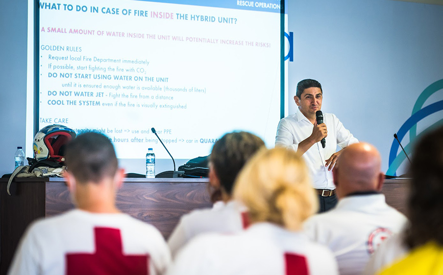 Το πρόγραμμα ξεκίνησε με θεωρητική εκπαίδευση πάνω στα νέα υβριδικά συστήματα, στον τρόπο λειτουργίας τους και στην πιθανότητα διαρροής υψηλής τάσης συνεχούς ρεύματος. Ακολούθησε αναλυτική παρουσίαση του τρόπου που πρέπει να προσεγγίζεται ένα αγωνιστικό αυτοκίνητο σε περίπτωση ακινητοποίησής του (λόγω βλάβης ή ατυχήματος), καθώς και επίδειξη απεγκλωβισμού μέλους του πληρώματός του.