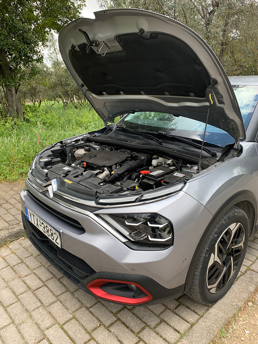 Το C4 C-Cross της δοκιμής μας, με 4κύλινδρο πετρελαιοκινητήρα 1.500 κ.εκ. που αποδίδει 131 ίππους από τις 3.500 στροφές, ροπή 300 Nm από μόλις 1.750 στροφές και μετάδοση στους εμπρός τροχούς από το γνωστό αυτόματο (με τυπικό μετατροπέα ροπής) κιβώτιο 8 σχέσεων της Aisin (EAT8), είναι ο πλέον ιδανικός συνδυασμός για την περίσταση.