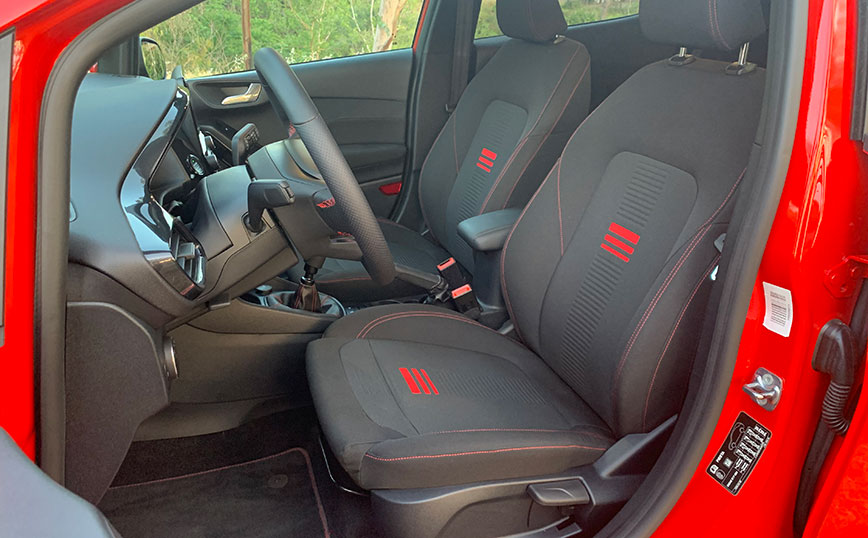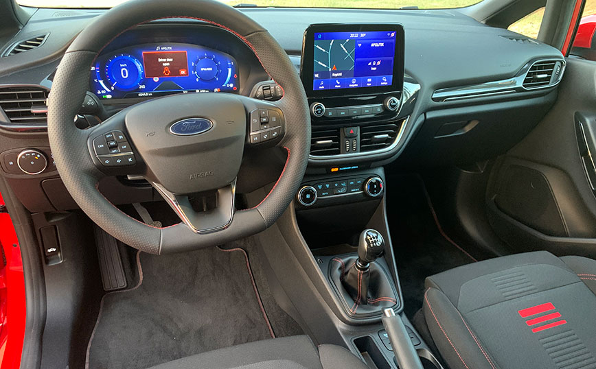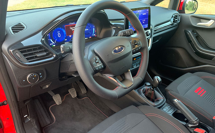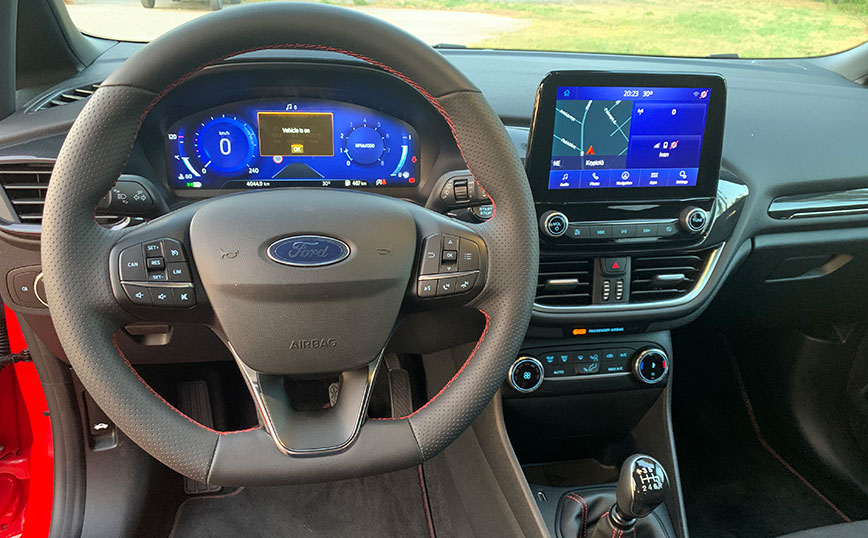 Με αυτά τα δεδομένα κατά νου καθίσαμε στην άψογη θέση του οδηγού (να είναι καλά οι αγώνες) του νέου Fiesta έκδοσης ST-Line με ήπιο υβριδικό κινητήριο σύστημα.