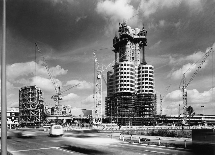 Μέχρι σήμερα, το Αρχηγείο του BMW Group, με την αναρτώμενη δομή του είναι ένα από τα πιο καινοτόμα κτίρια της μεταπολεμικής περιόδου – επειδή οι τέσσερις κύλινδροι αναρτώνται από μια ατσάλινη δομή σε σχήμα σταυρού που βρίσκεται στην οροφή. Στην ανέγερσή του, το κτίριο δεν αναπτύχθηκεαπό κάτω προς τα πάνω, όπως συνέβαινε συνήθως, καθώς οι επάνω όροφοι κατασκευάστηκαν αρχικά στο έδαφος και εν συνεχεία μεταφέρθηκαν με υδραυλικό τρόπο προς τα πάνω, στον τεράστιο «πύργο» που ήταν κατασκευασμένος από οπλισμένο σκυρόδεμα, και ολοκληρώθηκαν τμηματικά.