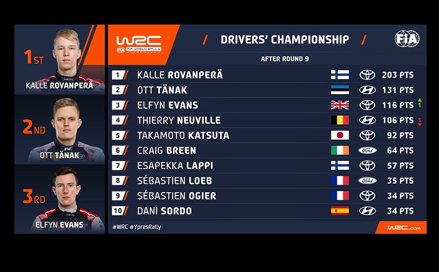 Τώρα και ενόψει Ράλι Ακρόπολις, ο Ροβάνπερα (άνετος νικητής της power stage του Βελγίου) προηγείται με 72 βαθμούς του Τάνακ (3ος ο Έβανς με 87β. διαφορά), και η Toyota έχει διαφορά 88 βαθμών από την Hyundai για το Πρώτάθλημα κατασκευαστών, ενώ η M-Sport Ford (που δεν πήρε ούτε ένα βαθμό στο Βέλγιο!) είναι στην 3η θέση, 192 βαθμούς πίσω από την Toyota και ελπίζει μόνο στην εξασφαλισμένη δημοσιότητα που θα φέρει η συμμετοχή του Σεμπάστιαν Λεμπ με Puma Rally1 στο Ακρόπολις. Κατά τα λοιπά τα σενάρια (όπως συνηθίζεται αυτή την εποχή) πληθαίνουν, με πολλούς να θεωρούν πιθανή την μετακίνηση του Τάνακ στην ομάδα του –αποτυχημένου φέτος- Μάλκολμ Γουίλσον. Ίδωμεν…