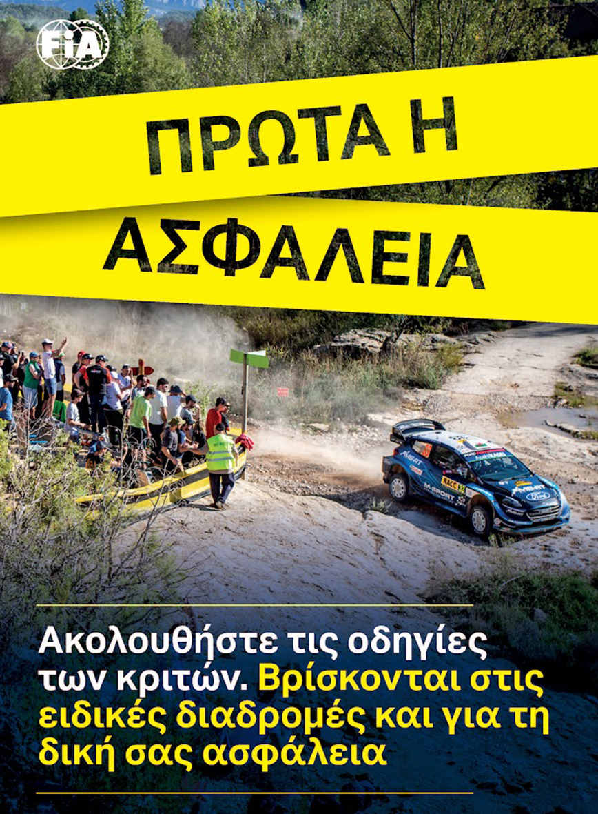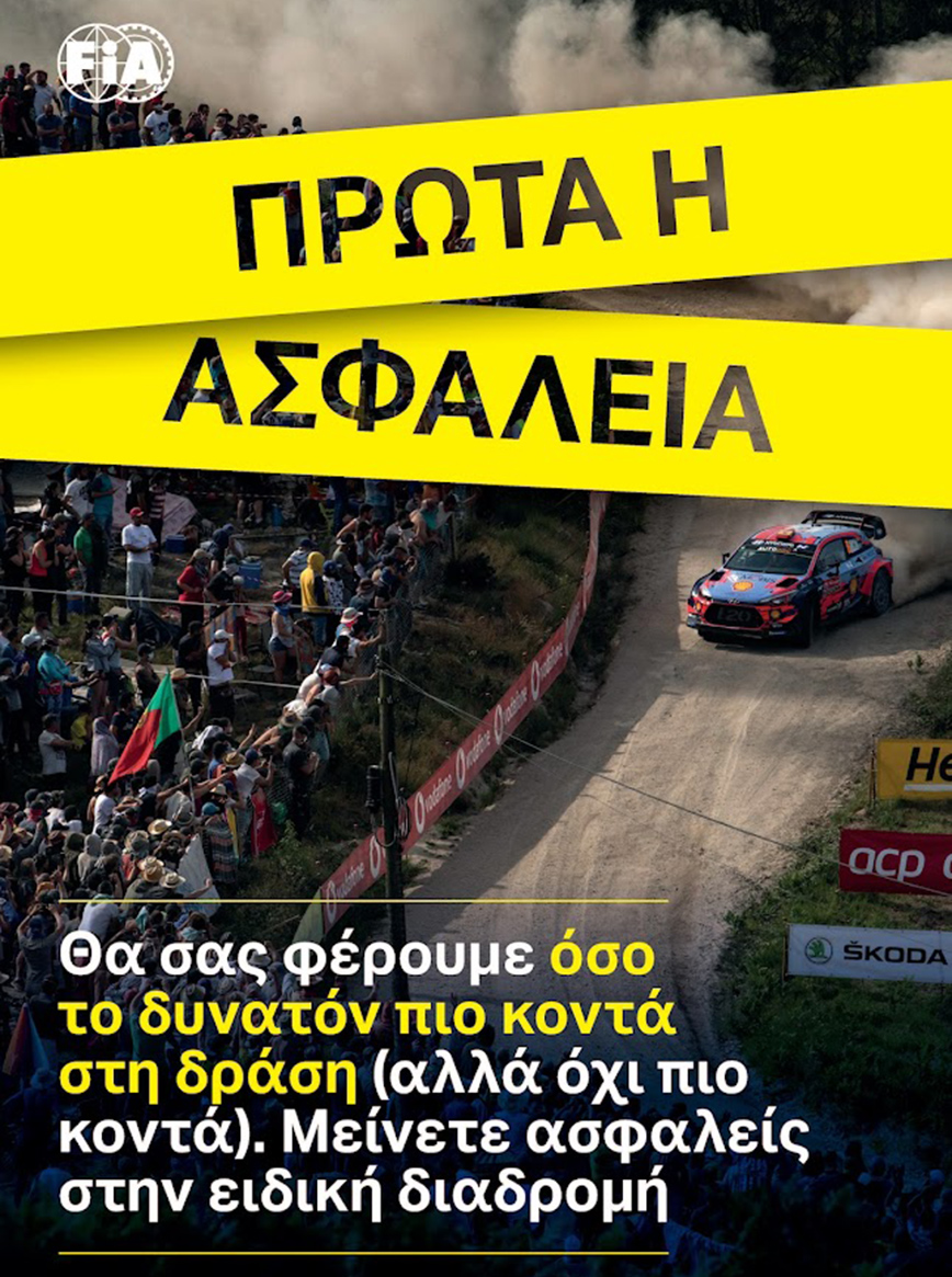- Σεβόμαστε τη σήμανση και την οριοθέτηση χώρων με κορδέλες ασφαλείας, καθώς τα αγωνιστικά αυτοκίνητα μπορεί να βγουν εκτός πορείας οπουδήποτε.