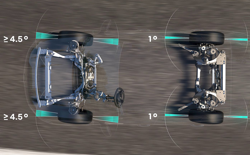 Κατά την οδήγηση με υψηλές ταχύτητες, ή σε δρόμο με στροφές με ταχύτητα μεγαλύτερη των 50χλμ./ώ, οι πίσω τροχοί στρέφουν έως και 1° προς την ίδια κατεύθυνση με τους μπροστινούς. Αυτό επιτυγχάνεται χάρη στην προσθήκη ενός ενεργοποιητή διεύθυνσης, τοποθετημένου στον πίσω άξονα, ο οποίος ελέγχει τις πληροφορίες που προέρχονται από το υδραυλικό τιμόνι, τον κινητήρα και το ηλεκτρονικό σύστημα ευστάθειας (ESP).