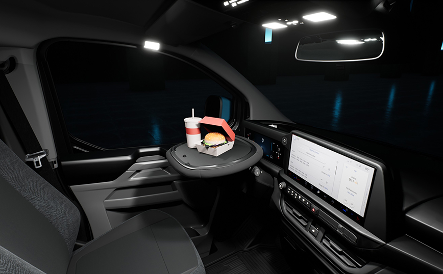 Η τεχνολογία μπαταρίας επόμενης γενιάς επιτρέπει στοχευμένη αυτονομία 380 χλμ με ικανότητα ταχείας φόρτισης 125 kW. Για τη μεγιστοποίηση της παραγωγικότητας κατά τη διάρκεια της εργάσιμης ημέρας, το E-Transit Custom προσφέρει νέες ψηφιακές λύσεις για διανομές πολλαπλών στάσεων και την πρόσβαση στην καμπίνα και το χώρο φόρτωσης. Η καμπίνα είναι επίσης ένας επιχειρηματικός κόμβος, με συνδεσιμότητα 5G, αλλά και ένας ευέλικτος χώρος εργασίας που περιλαμβάνει έξυπνα χαρακτηριστικά όπως ένα τιμόνι που αναδιπλώνεται και μεταμορφώνεται σε εργονομική βάση για laptop και tablet.