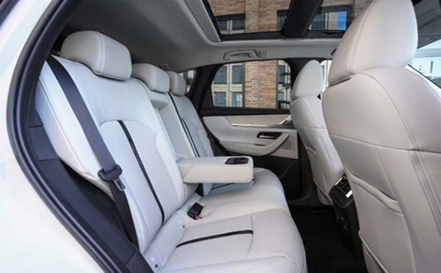 Η τοποθέτηση της μπαταρίας υψηλής τάσης μεταξύ του μπροστινού και του πίσω άξονα και όσο το δυνατόν χαμηλότερα στο αμάξωμα, εξασφαλίζει στο όχημα ένα ιδιαίτερα χαμηλό κέντρο βάρους. Αυτό, σε συνδυασμό με ένα μόνιμο σύστημα τετρακίνησης που κατανέμει τη ροπή μεταξύ των αξόνων, του δίνει κορυφαία χαρακτηριστικά οδικής συμπεριφοράς αντίστοιχα με τα καλύτερα μοντέλα της premium κατηγορίας.