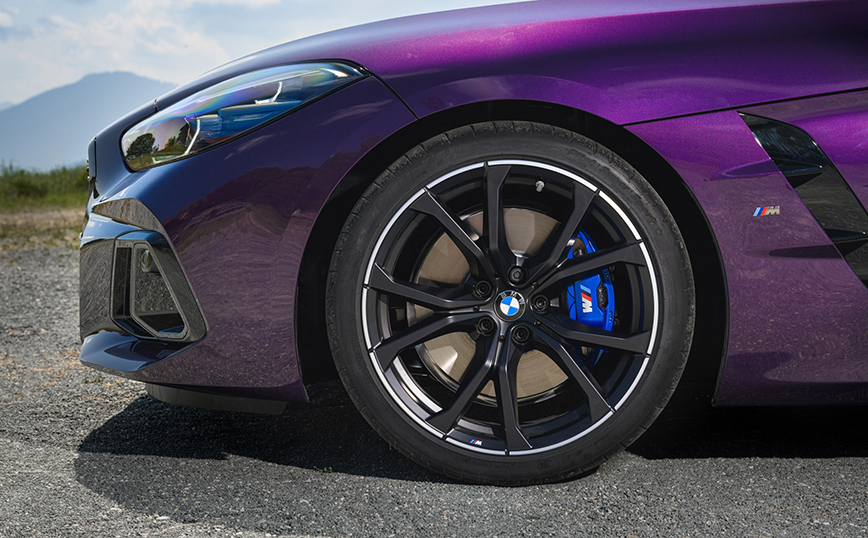 Οι νέες προσθήκες στον στάνταρ εξοπλισμό περιλαμβάνουν ζάντες ελαφρού κράματος Μ 18 ιντσών σε σχέδιο διπλών ακτίνων. Αυτές οι δίχρωμες ζάντες είναι εφοδιασμένες με ελαστικά διαφορετικών διαστάσεων εμπρός/πίσω: 225/45 R18 στον εμπρός άξονα και 255/40 R18 στον πίσω. Οι επιλογές που διατίθενται τώρα για τους πελάτες περιλαμβάνουν ζάντες αλουμινίου Μ 19 ιντσών σχεδιασμένες αποκλειστικά για την Z4. Η σχεδίαση με ακτίνες σχήματος V, το ματ φινίρισμα Jet Black και το γυαλιστερό χείλος των ζαντών εισάγουν μία ιδιαίτερα εντυπωσιακή και εκλεπτυσμένη αύρα στην πλάγια όψη του roadster. Οι ζάντες ελαφρού κράματος Μ 19 ιντσών συνδυάζονται με ελαστικά διαστάσεων 255/35 ZR19 στον εμπρός άξονα και 275/35 ZR19 στον πίσω.