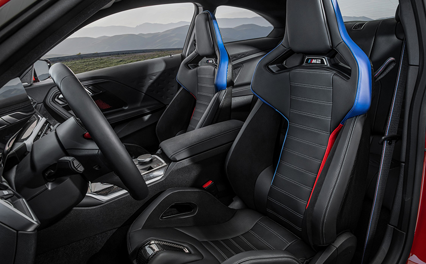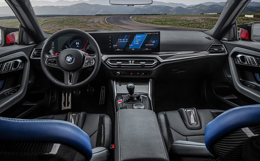 Η νέα M2 διαθέτει cockpit με οδηγοκεντρική σχεδίαση που περιλαμβάνει όργανα, χειριστήρια και επιλογές ρύθμισης ειδικά για μοντέλα M, καθώς και το προηγμένο Curved Display. Πληροφορίες που σχετίζονται με την οδήγηση, όπως το Shift Lights, εμφανίζονται με μια νέα γραφική διάταξη στην οθόνη πληροφοριών 12.3 ιντσών. Τα ειδικά για μοντέλα Μ widgets για τη διαμόρφωση του οχήματος και την κατάσταση των ελαστικών, είναι δύο μόνο από τα στοιχεία που μπορούν να εμφανιστούν στην οθόνη ελέγχου 14.9”. Το προαιρετικό Head-Up Display περιλαμβάνει επίσης ενδείξεις ειδικές για μοντέλα M.