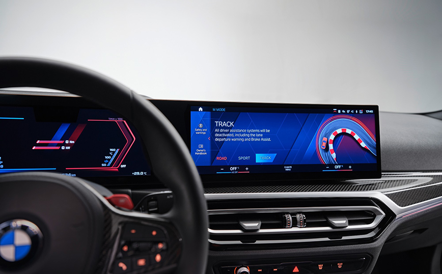 Εκτός από το M Traction Control, το M Drive Professional (στάνταρ εξοπλισμός) περιλαμβάνει επίσης το M Drift Analyser και το M Laptimer. Επιπλέον, το μπουτόν M Mode στην κεντρική κονσόλα μπορεί να χρησιμοποιείται τόσο για τη ρύθμιση του βαθμού παρεμβατικότητας του συστήματος υποβοήθησης οδηγού, όσο και του περιεχομένου που προβάλλεται στην οθόνη πληροφοριών και το Head-Up Display, με επιλογή των ρυθμίσεων Road, Sport και Track. Η λίστα προαιρετικών επιλογών περιλαμβάνει επίσης το M Race Track Package, που αποτελείται από το M Driver’s Package μαζί με την οροφή M Carbon, τα μπάκετ καθίσματα M Carbon, τις διακοσμητικές λωρίδες εσωτερικού σε φινίρισμα Carbon Fibre και τα ελαστικά για χρήση σε πίστα.