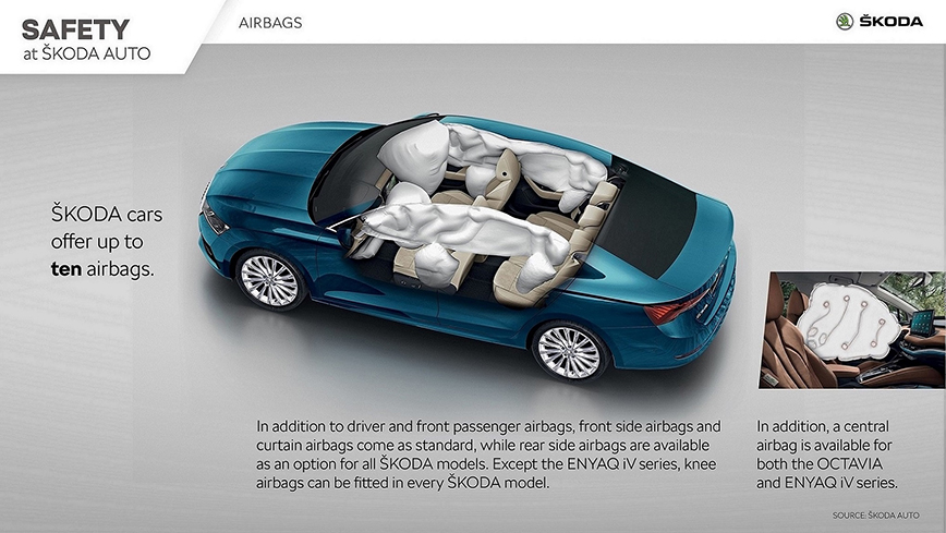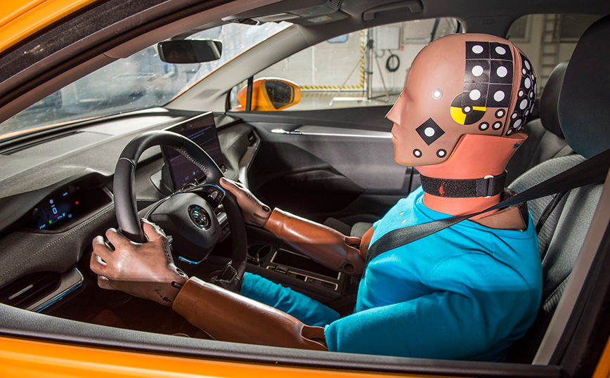 Σήμερα, η μάρκα διαθέτει μια υπερσύγχρονη εγκατάσταση δοκιμών πρόσκρουσης στο κέντρο δοκιμών Polygon, στο Úhelnice. Τα αποτελέσματα από τις δοκιμές αναφοράς EuroNCAP και τις δοκιμές GlobalNCAP για την ασφάλεια σύγκρουσης στοιχειοθετούν ένα εντυπωσιακό ιστορικό για τον κατασκευαστή από την Τσεχία, καθώς και τα 15 νέα μοντέλα της εταιρείας που παρουσιάστηκαν από το 2008 έχουν συγκεντρώσει την υψηλότερη βαθμολογία πέντε αστέρων. Το 2021, τα τρέχοντα Fabia και Enyaq iV αξιολογήθηκαν ως τα ασφαλέστερα οχήματα στις κατηγορίες τους.