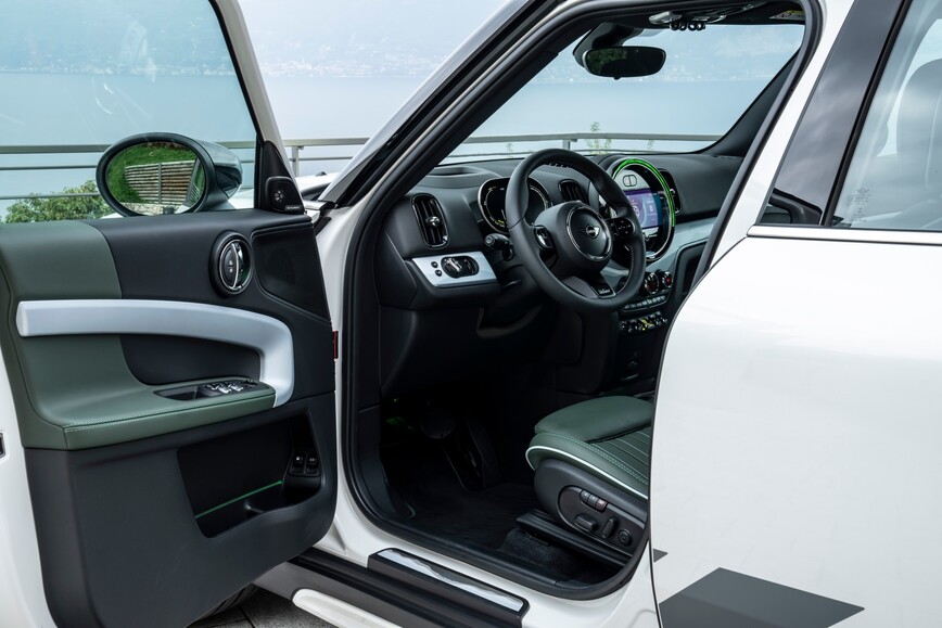 Ένα γραφικό μοτίβο εμπνευσμένο από ένα ορεινό τοπίο στην ίδια απόχρωση δίνει επίσης το παρών στα πλαϊνά διακοσμητικά και στα πλαϊνά σκαλοπάτια και στις επενδύσεις των μαρσπιέ του Cooper SE Countryman ALL4 στην ειδική έκδοση Untamed Edition. Η επιγραφή «Untamed» κοσμεί τα πίσω πλαϊνά παράθυρα.