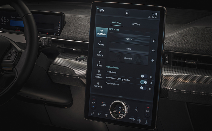 Η Mustang Mach-E μπορεί να ταξιδέψει ακόμα πιο μακριά με μια φόρτιση και να αυξήσει την αυτονομία που προσφέρει όταν ο οδηγός ενεργοποιήσει τη λειτουργία Whisper που θα καταστήσει πιο ομαλή την επιτάχυνση, ενώ σημαντικά οφέλη προκύπτουν και στην περίπτωση αξιοποίησης των δυνατοτήτων του προηγμένου Cruise Control,που διατηρεί αποδοτικά μια σταθερή ταχύτητα μειώνοντας την ανάγκη για άσκοπη επιβράδυνση ή επιτάχυνση.