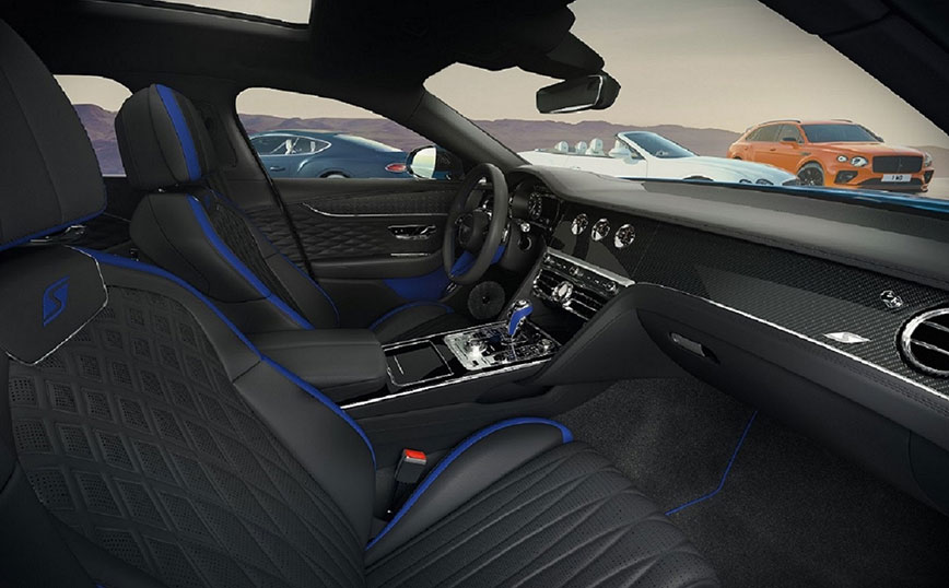 Η 500η παραγγελία της Mulliner για το 2022 από πελάτη στο Ηνωμένο Βασίλειο ήταν μια από τις πρώτες Flying Spur S Hybrid στην οποία παρουσιάστηκε η νέα εξωτερική απόχρωση Spark Blue. Την εξατομικευμένη εμφάνιση συμπληρώνουν τα στοιχεία με γυαλιστερό φινίρισμα του πακέτου Black line και οι σπορ μαύρες ζάντες 22 ιντσών με σχέδιο δέκα ακτινών. Το φωτιζόμενο σήμα Flying B σε γυαλιστερή μαύρη απόχρωση, πάνω από τη μαύρη μάσκα του ψυγείου, χαρίζει στην εικόνα ένα εντυπωσιακό εφέ.