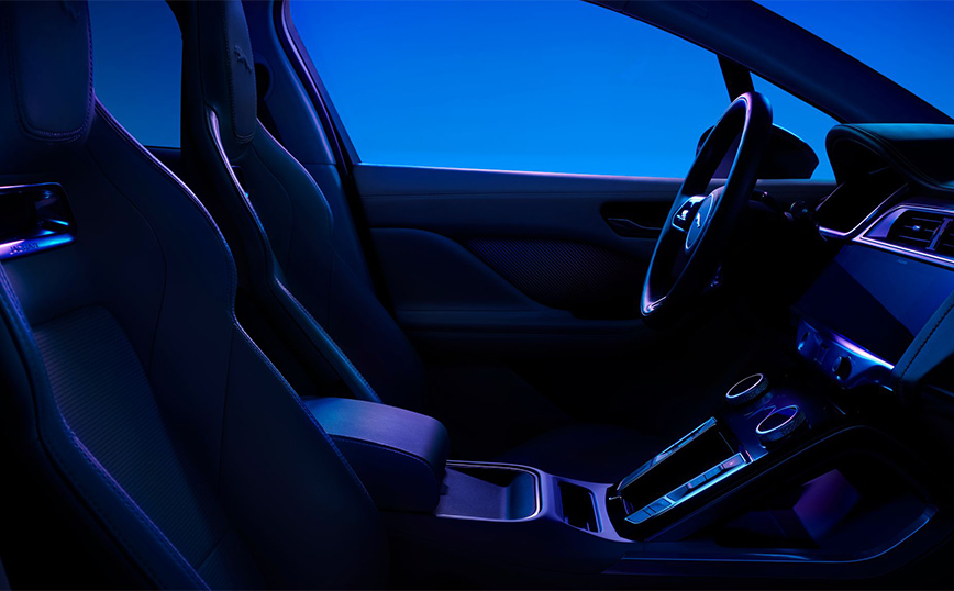 Στο εσωτερικό δεν υπάρχουν αλλαγές με όλες τις εκδόσεις να διαθέτουν το multimedia σύστημα Pivi Pro σαν μέρος του στάνταρ εξοπλισμού. Επίσης, το preconditioning είναι μία χρήσιμη τεχνολογία που αναβαθμίζει την άνεση, καθώς ενώ το όχημα είναι συνδεδεμένο, θερμαίνει ή ψύχει αυτόματα τη μπαταρία στην ιδανική θερμοκρασία και ταυτόχρονα κάνει το ίδιο για το εσωτερικό. Έτσι μεγιστοποιείται η αυτονομία, ενώ η λειτουργία μπορεί να ρυθμίζεται είτε χρησιμοποιώντας την οθόνη αφής του οχήματος ή την εφαρμογή Jaguar Remote App.