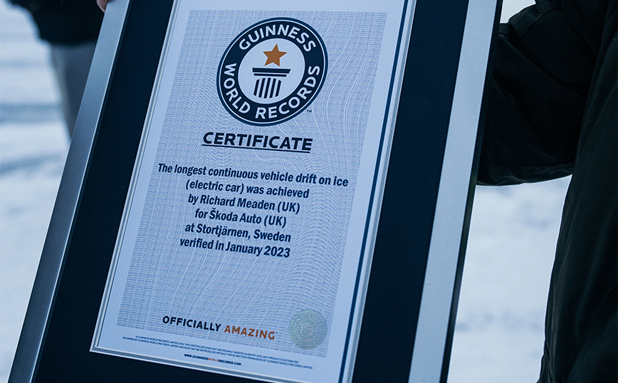 Η Škoda σημείωσε δύο επίσημα παγκόσμια ρεκόρ drift στον πάγο με το Enyaq RS iV SUV, το αμιγώς ηλεκτρικό σπορ μοντέλο της μάρκας. Τα ρεκόρ για το «Μεγαλύτερο συνεχόμενο drift οχήματος στον πάγο» και το «Μεγαλύτερο συνεχόμενο drift οχήματος στον πάγο με ηλεκτρικό αυτοκίνητο», επαληθεύτηκαν από την Guinness World Record.
