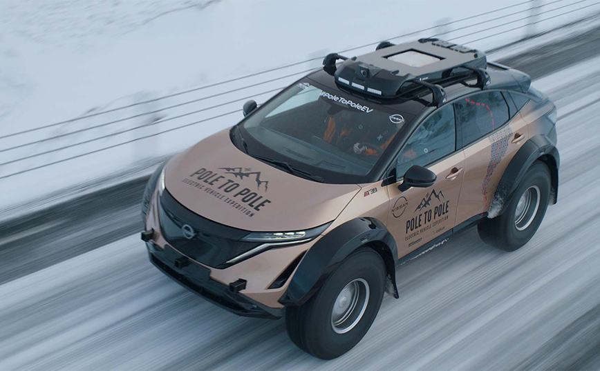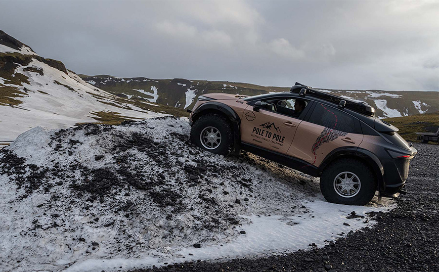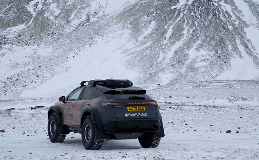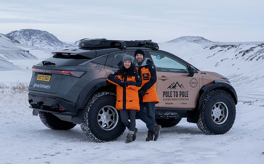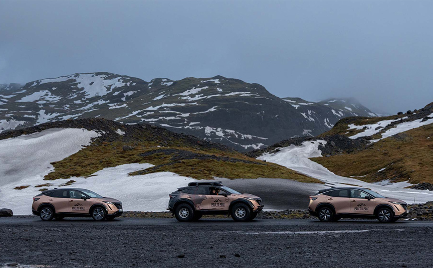 Στο Reykjavic της Ισλανδίας, σε ένα σκηνικό που θυμίζει Αρκτική, η ομάδα αποστολής Pole to Pole και η Nissan, παρουσίασαν την «ετοιμοπόλεμη» έκδοση του νέου ηλεκτρικού SUV Ariya, που θα πραγματοποιήσει ένα ταξίδι 27.000 χιλιομέτρων από τον μαγνητικό Βόρειο Πόλο στον Νότιο Πόλο.