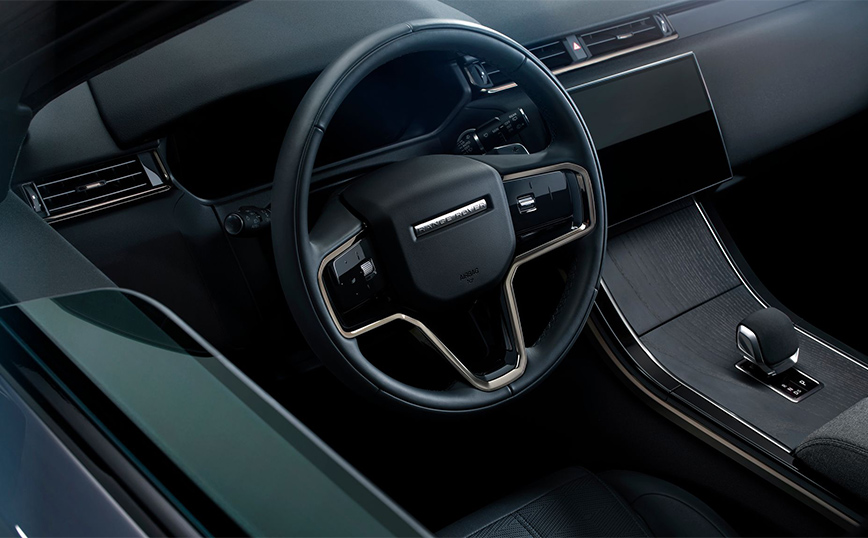 Το κομψό εσωτερικό του Range Rover Velar είναι ακόμα πιο λιτό, με εξαιρετική ποιότητα κατασκευής και νέα υλικά. Η πιο εξελιγμένη έκδοση του συστήματος ενημέρωσης και ψυχαγωγίας PiviPro7 της μάρκας αποτελεί το επίκεντρο. Μία ενιαία διεπαφή με ‘αιωρούμενη’ κυρτή γυάλινη οθόνη 11,4 ιντσών, είναι εργονομικά τοποθετημένη πιο ψηλά και σε θέση για ευκολότερη πρόσβαση, ώστε να ελαχιστοποιούνται τόσο η διάσπαση της προσοχής του οδηγού όσο και οι αντανακλάσεις.Το νέο Velar συνεχίζει να προσφέρει μια επιλογή καμπίνας χωρίς χρήση δερμάτινων επενδύσεων, με νέα σχέδια και υλικά καθισμάτων. Η επιλογή αυτή συνδυάζει μαλλί από την Δανική εταιρεία κλωστοϋφαντουργικών προϊόντων Kvadrat με υφασμάτινα ένθετα πολυουρεθάνης Ultrafabrics, που διαθέτουν ένα νέο μοτίβο διάτρησης Diamond Herring bone. Εμπνευσμένα από την υψηλή ραπτική, τα μείγματα μαλλιού Kvadrat είναι κατά 58% ελαφρύτερα από το δέρμα και προσφέρουν μια μοντέρνα εμφάνιση και βελτιωμένη αίσθηση αφής για μια σύγχρονη εκδοχή της παραδοσιακής πολυτέλειας Range Rover. Το καινοτόμο ύφασμα έχει υποβληθεί σε αυστηρές εσωτερικές δοκιμές αντοχής προκειμένου να διασφαλιστεί ότι παρέχει τη συνήθη ανθεκτικότητα καθ’ όλη τη διάρκεια ζωής του οχήματος, περνώντας από 60.000 κύκλους δοκιμών τριβής (ισοδυναμεί με 10 χρόνια χρήσης) και δοκιμές υπεριώδους ακτινοβολίας ικανές να προσομοιώσουν τρία χρόνια έκθεσης στον ήλιο μέσα σε μόλις ένα μήνα. Εισάγονται τέσσερις νέες δερμάτινες αποχρώσεις: Cloud, Caraway, Raven Blue και Deep Garnet. Αυτές συμπληρώνονται από μια επιμελημένη επιλογή λεπτομερειών, όπως το νέο Moonlight Chrome στο τιμόνι, στα περιγράμματα της κεντρικής κονσόλας και στους αεραγωγούς. Τα τεχνικά φινιρίσματα Light Anodised ή Dark Anodised Aluminium ή τα φινιρίσματα από ξύλο Shadow Grey Ash υπογραμμίζουν τη φινέτσα του. Δύο νέες χρωματικές επιλογές πλαισιώνουν την χρωματική παλέτα εξωτερικού: Metallic Varesine Blue και Premium Metallic Zadar Grey.