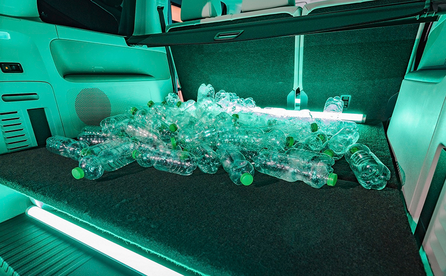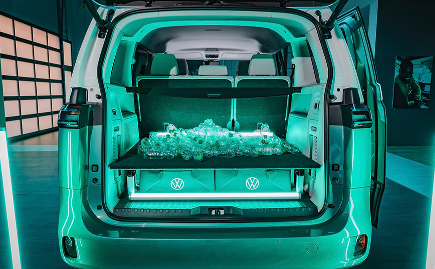 Η μάρκα χρησιμοποιεί ήδη ένα σημαντικό αριθμό καινοτόμων υλικών στο εσωτερικό του ID. Buzz, τα οποία θα τοποθετηθούν σταδιακά και στα υπόλοιπα μοντέλα της γκάμας ID. Για παράδειγμα, στο εσωτερικό του νέου ηλεκτρικού MPV μοντέλου χρησιμοποιούνται εκτενώς εναλλακτικά υλικά τα οποία προέρχονται από πλαστικά θαλάσσια απορρίμματα ή από παλιά μπουκάλια ΡΕΤ (για την ακρίβεια, 63 μπουκάλια μεγέθους 500 ml). Το εξωτερικό υλικό για την επένδυση των καθισμάτων είναι κατασκευασμένο από νήμα Seaqual, το οποίο αποτελείται κατά 10% από συλλεγμένα θαλάσσια απορρίμματα και κατά 90% από ανακυκλωμένο νήμα PES.