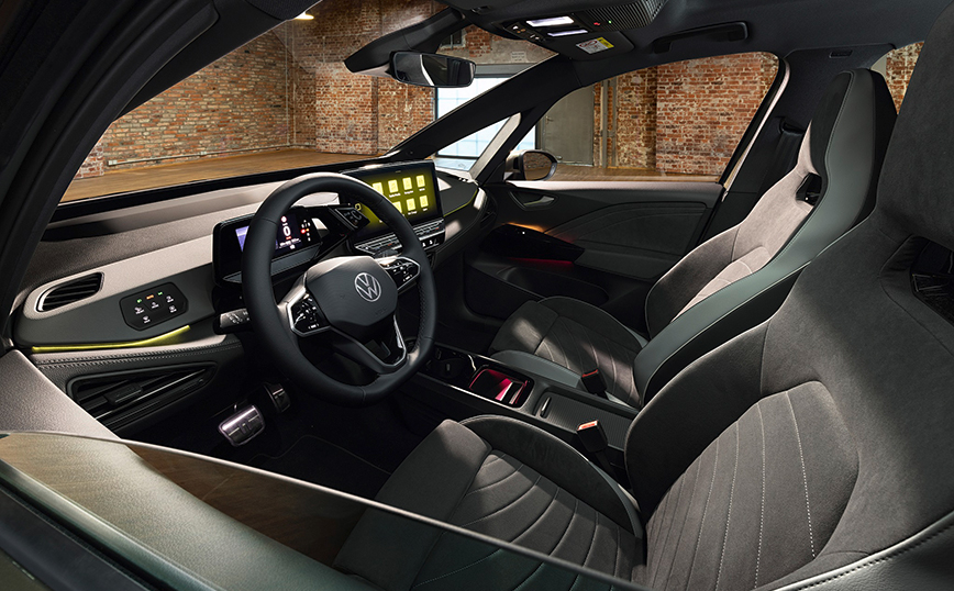 Η γκάμα των αποχρώσεων έχει μεγαλώσει με νέα διαθέσιμα χρώματα, συμπεριλαμβανομένου και του «Dark Olivine Green». Υψηλής ποιότητας υλικά, βιώσιμα και χωρίς ζωική προέλευση, αντικατοπτρίζουν τη στρατηγική της μάρκας για την πλήρως ηλεκτρική οικογένεια των μοντέλων ID.
