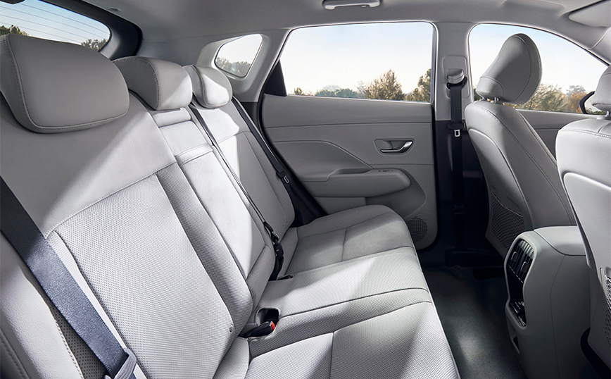 Το νέο Kona Electric προσφέρει την μεγαλύτερη ηλεκτρική αυτονομία (AER) στην κατηγορία των B-SUV (εκτιμώμενη κατά WLTP στα 490 χλμ.). Επίσης, διαθέτει ειδικά σχεδιαστικά EV χαρακτηριστικά, όπως το μπροστινό πορτμπαγκάζ (frunk), ενεργά πτερύγια αέρα, εσωτερικές και εξωτερικές παροχές ρεύματος (Vehicle-to-Load ή V2L), Head-up Display (HUD), λειτουργία οδήγησης i-PEDAL, έξυπνο σύστημα ανάκτησης ενέργειας, ηλεκτρονικό ενεργό σχεδιασμό ήχου (e-ASD) και Eco Package.