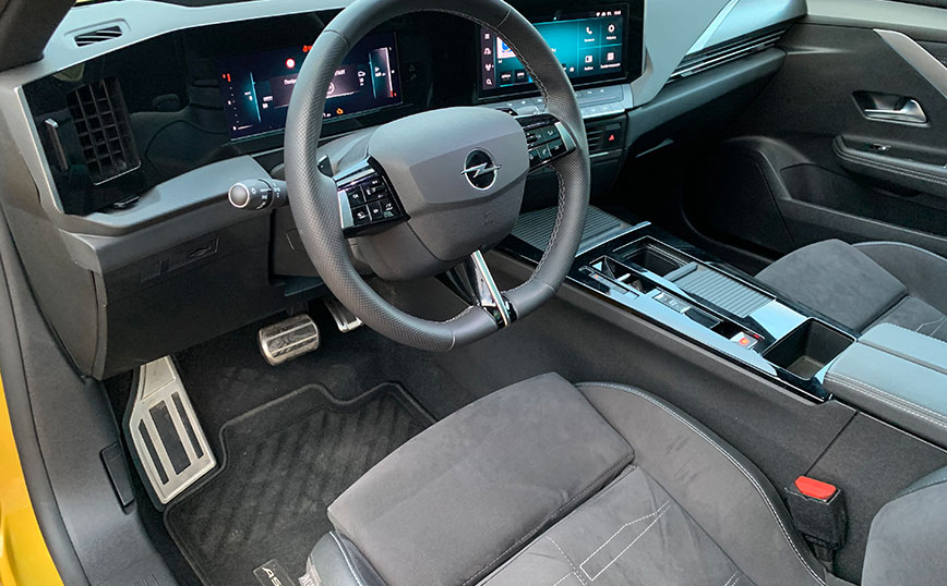 Το νέο Astra είναι χτισμένο πάνω στην 3η γενιά της πλατφόρμας EMP2, όπως και το Peugeot 308, κάτι που γίνεται αμέσως αντιληπτό από την υπέροχη θέση οδήγησης. Ο οδηγός κάθεται χαμηλά, έχει καλή περιμετρική ορατότητα, βλέπει χωρίς περιορισμούς τα όργανα του καντράν και το μόνο που χρειάζεται είναι λίγος χρόνος εξοικείωσης με τα χειριστήρια.